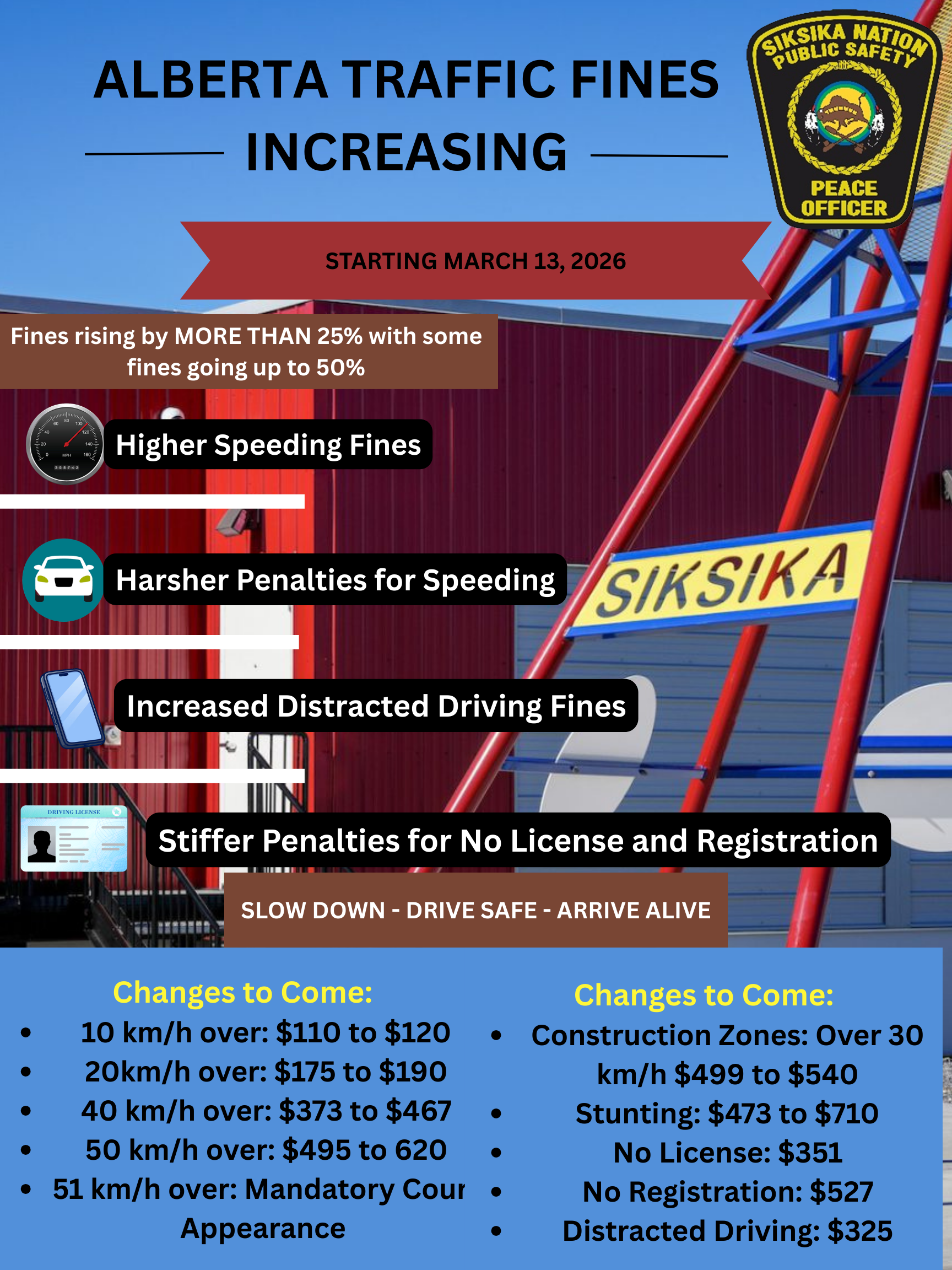 Please carefully read the following information from Public Safety regarding Alberta Traffic Fines increasing on March 13th.