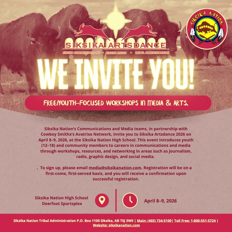Siksika Artsdance is coming soon — a two-day event focused on media, storytelling, and creative workshops for youth.