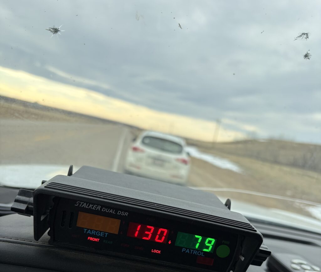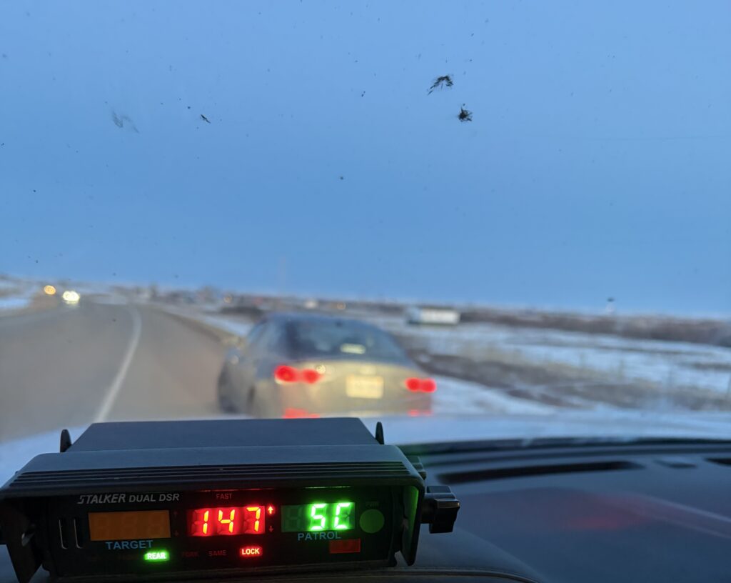 Siksika Peace Officers continue to keep our roadways safe. Pictured are two counts of dangerous speeding along Highway 547 and 901. These were captured over the last week.