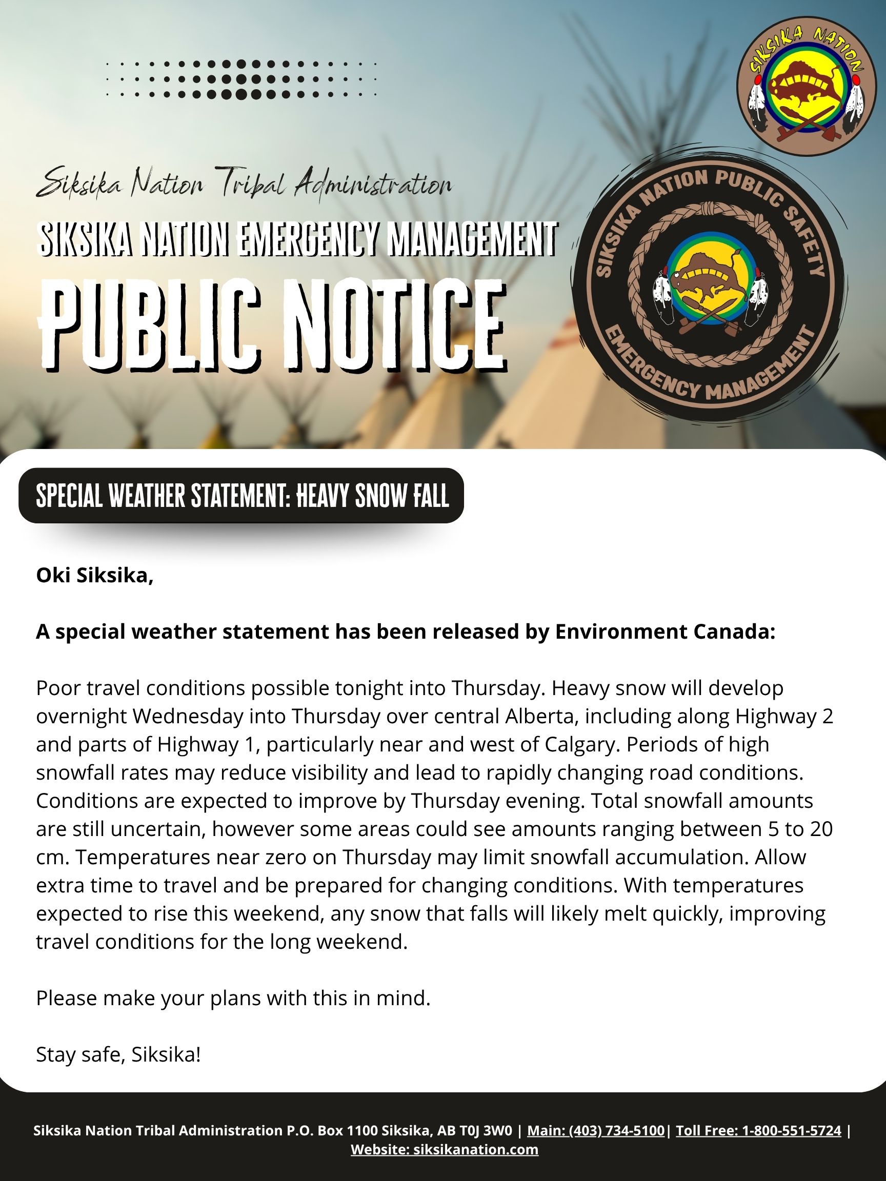 Poor travel conditions possible tonight into Thursday. Heavy snow will develop overnight Wednesday into Thursday over central Alberta, including along Highway 2 and parts of Highway 1, particularly near and west of Calgary. Periods of high snowfall rates may reduce visibility and lead to rapidly changing road conditions.